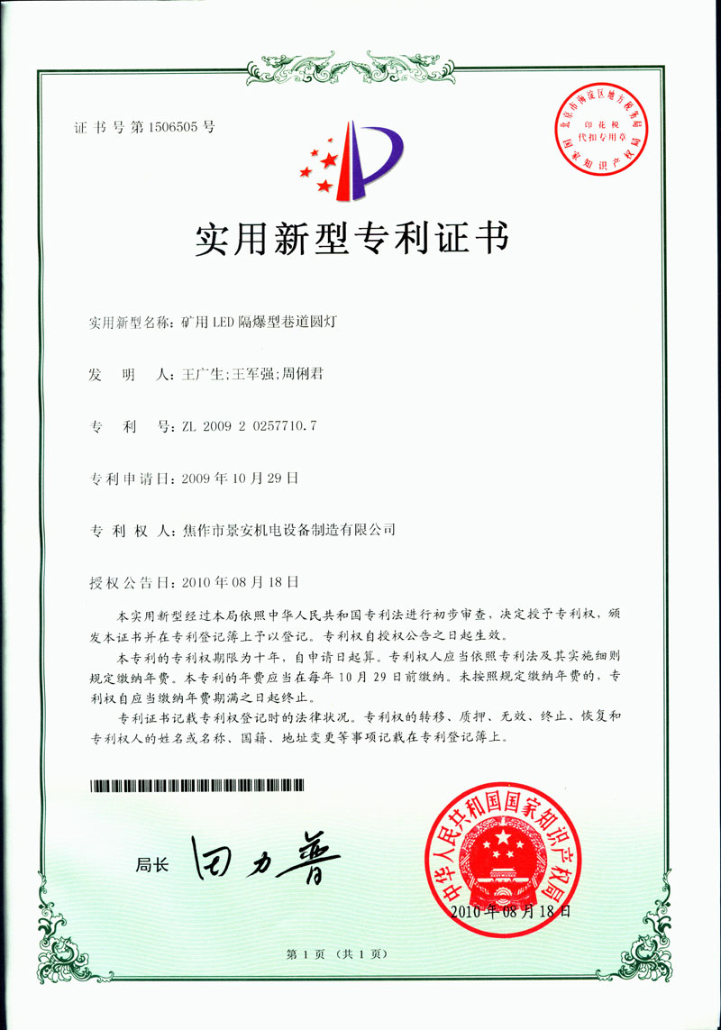 焦作景安公司始終堅持“以科技為先導(dǎo),以市場為導(dǎo)向”的發(fā)展戰(zhàn)略,不斷進行新產(chǎn)品的研制和開發(fā),在國家“六五”到“九五”期間,承擔(dān)和參與了國家多項科技攻關(guān)項目,產(chǎn)品的技術(shù)和質(zhì)量一直處于全國同行業(yè)領(lǐng)先位置。并被中國電器工業(yè)協(xié)會評定為“質(zhì)量可信產(chǎn)品”。特別是在礦用防爆燈領(lǐng)域,礦用隔爆型半導(dǎo)體(LED)照明燈具,2008年列入國家火炬計劃,獲2009年河南省工業(yè)和信息化廳的科技成果二等獎,并擁有多項國家專利。 |